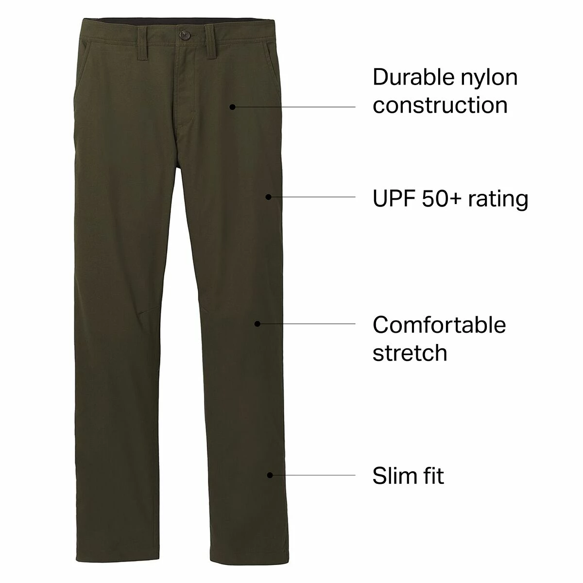 - prAna’s popular climbing and hiking pant made with recycled fabric